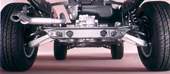An electronic two speed transfer case provides comfortable highway cruising and one of the lowest "crawl speds" in class when low rage is engaged. A five speed automatic is optimized for smooth shifting in rugged off road conditions.